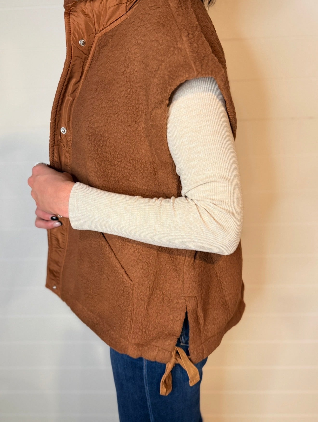Layer up with our cozy Fleece Button Vest Jacket, where comfort meets style! This brown beauty features soft sherpa lining that feels like a warm hug, making it the ultimate layering piece for any season.
